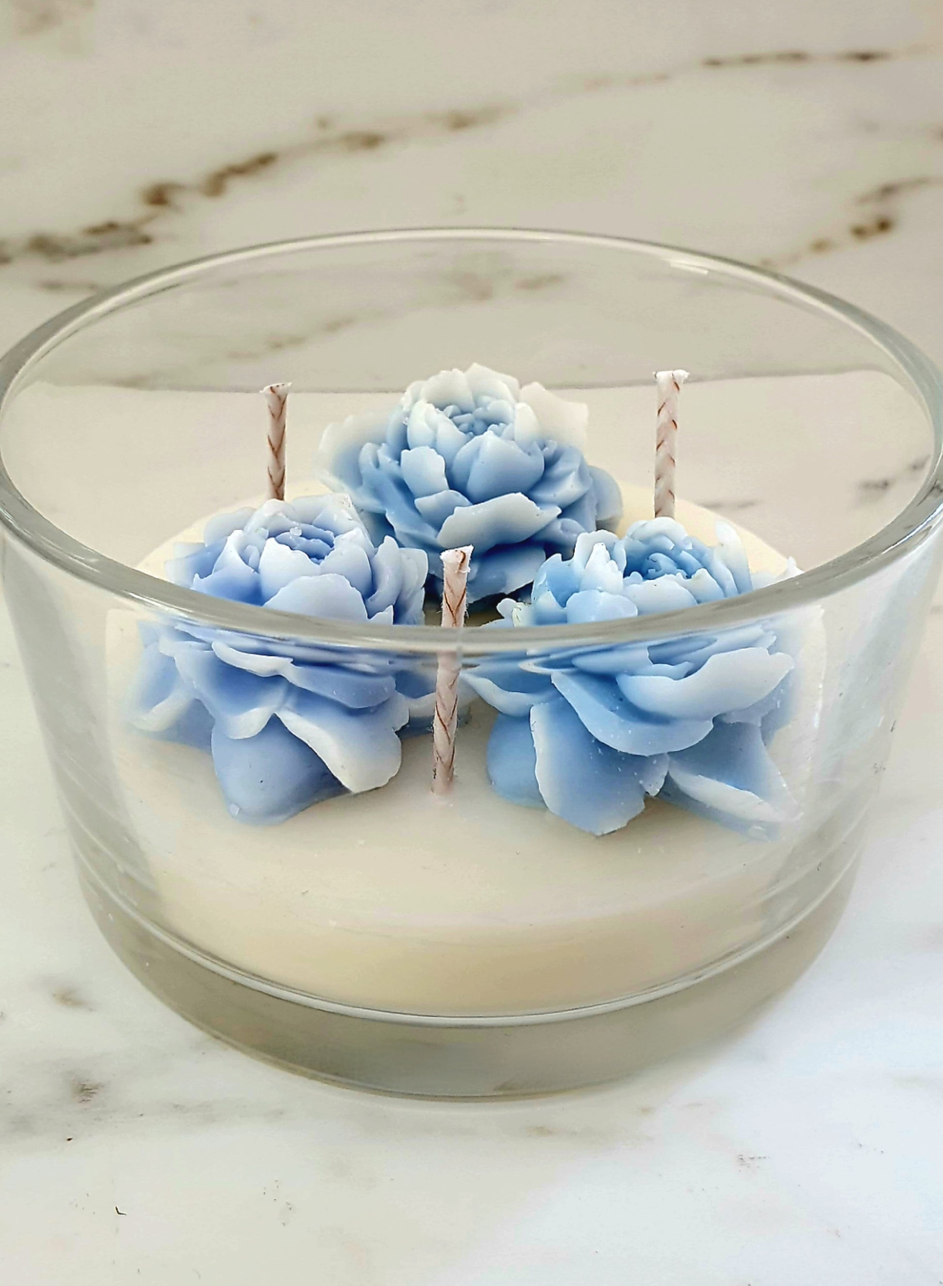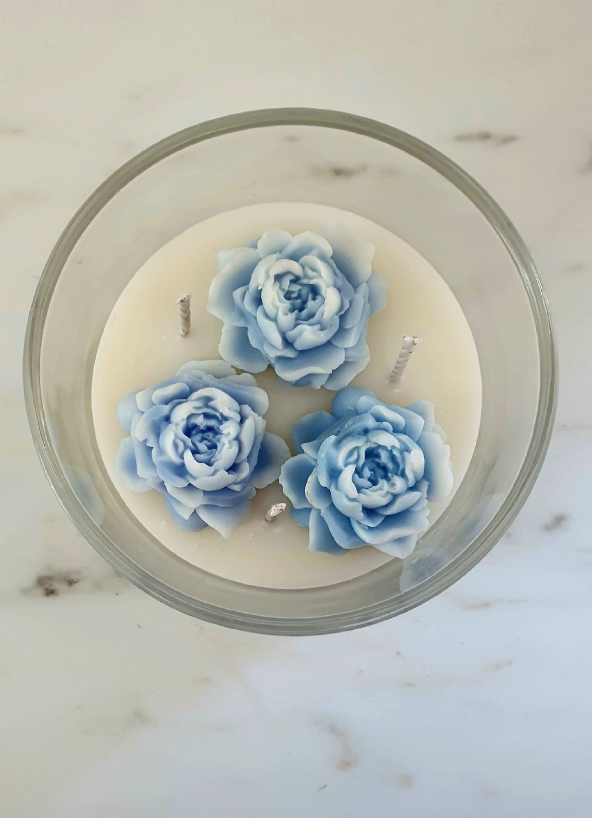 An elegant candle consisting of 3 delicate jasmine flowers, scented with a sweet floral accord of sweet pea flowers entwined with jasmine, set within a 50cl bowl style vessel.